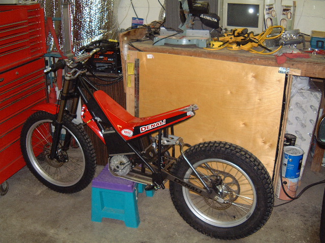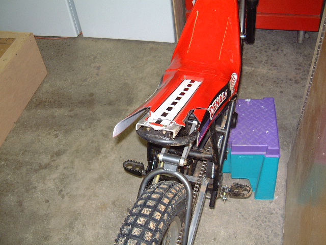 Well, I put fresh batteries, and a sticky set of Michelins on the Torq Atak, and took it out for some testing. Wooo-HOOO! Too much fun climbing even slippery ledges. Unfortunately, with all that new torque, and traction to apply it, we found the bike's LRPANR, Longitudinal Rotational Pivot Angle of No Return, or loop-out point, for layman and moto-heads. Here's some photos of the structural integrity research and development results. (Read: crash damage) Fortunately, sound testing procedures (good helmet, boots and gloves) and years of experience (my battered brain can't remember all of the spectacular crashes I've had) precluded any human damage other than bruised pride, and a lighter wallet when Brett and Ely give me a price on some new bodywork. Amazingly, despite a full-blown flip-flop cartwheel down the hill that would have made Olga Korbut proud, the rest of the bike was undamaged!