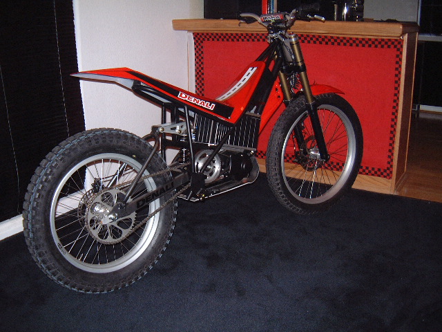 This one is number 4 of only 5 in existence and is mine, but you can get it for a STEAL of a price, including the charger that plugs into a regular 110 outlet, a new set of Michelins Competition Trials tires, a spare set of batteries, AND the high-torque gearing setup.
